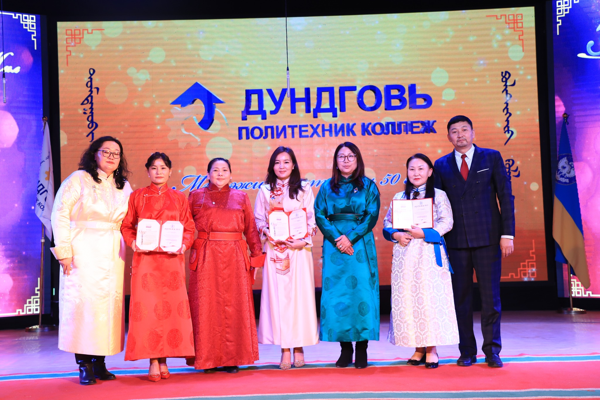 Дундговь аймаг дахь Политехник коллежийн 50 жилийн ойн баярын хүндэтгэлийн хурлын үеэр олон жил үр бүтээлтэй ажиллаж, сургууль, аймаг орон нутгийн хөгжил, хүүхэд залуучуудын боловсролд үнэтэй хувь нэмэр оруулсан багш, ажилтан, төгсөгчдийг төрийн дээд одон медаль болон аймаг, орон нутаг, салбарын шагналаар шагналаа.